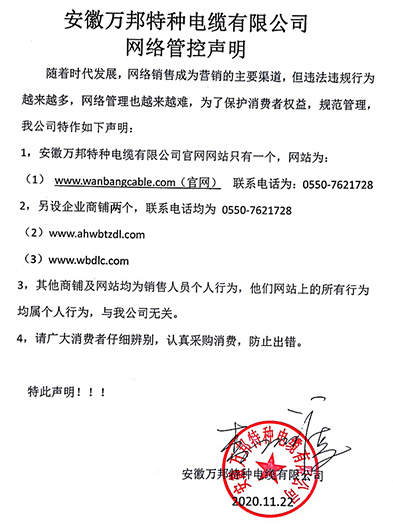 鄭重聲明:安徽萬邦特種電纜有限公司官方網站為:www_wanbangcable_com.whyretireinthailand.com,除此之外無任何子網站或合作網站,其余均為假冒偽劣。電話:0550-7621728 13485756353 地 址:安徽省天長市滁州高新技術產業開發區經四路29號